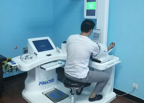 隨著生活水平的提高,人們越來越關注自身的健康狀況,希望能在家中通過簡單操作的檢測設備隨時量測自己的一些生理指標參數,獲得專業(yè)的健康指導意見。適用于家用的各種健康檢測設備現今也日益普及,但此類產品往往功能比較單一,只能進行單一的健康信息檢測,不能進行用戶的健康一體化檢測,且沒有網絡傳輸功能,不能對檢測記錄進行長期監(jiān)控、分析,滿足不了人們對健康檢測設備功能多樣化、智能化、網絡化的需求。有鑒于此,實有必要開發(fā)一種健康檢測一體機解決上述問題。發(fā)明內容[0003]針對現有技術中存在的不足之處,本發(fā)明的目的是提供一種健康檢測一體機,其結構固定,檢測儀器取放方便,用戶只需要坐在椅子上就可以完成體檢,無需繁瑣更換位置,可快速檢測和采集數據,同時實現數據的可視化,以及對檢測結果進行的異常分析,具有廣闊的市場應用前景。